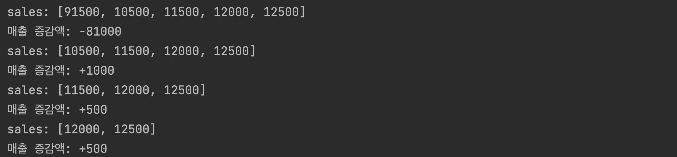 print(f'매출 증감액: {increase}')