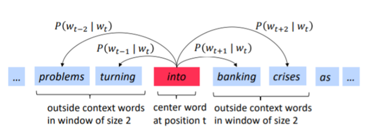 2) fixed size window를 통해 단어를 표현할 때 주위(context)를 살펴, 비슷한 문맥에서 나타나는 비슷한 단어들끼리 유사한 벡터를 가집니다.