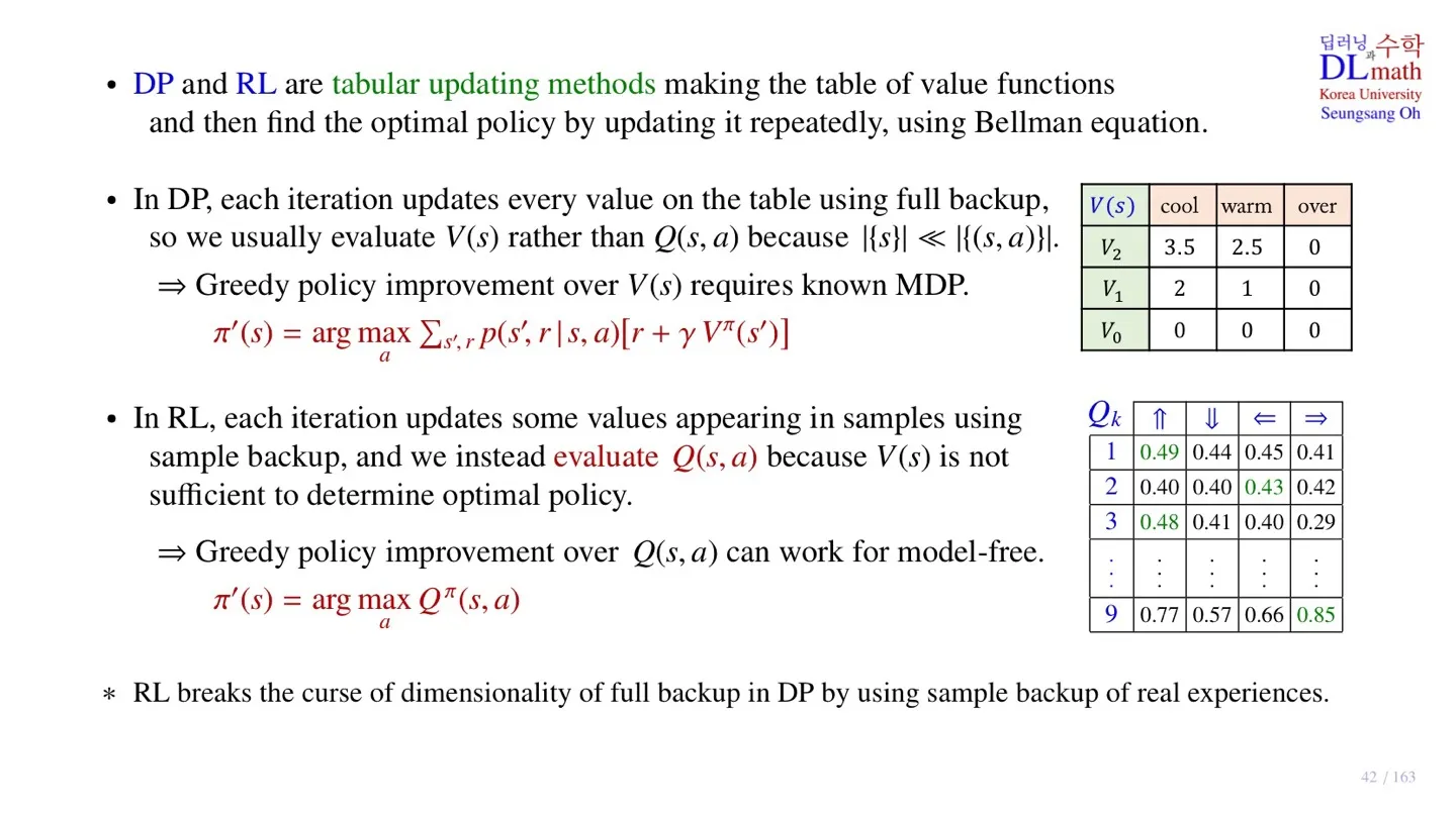 - Dynamic Programming에서 Q-table을 업데이트한다면, 모든 state와 action의 경우를 고려하기 때문에 연산량이 굉장히 많을 것이다.