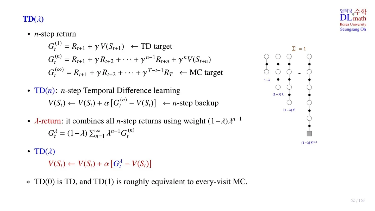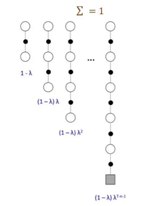 Temporal Difference와 Monte Carlo의 중간이라고 생각하면 된다.
