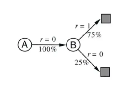 state B에서 접근 가능한 terminal state의 reward는 각각 1과 0이라는 것을 확인할 수 있다.