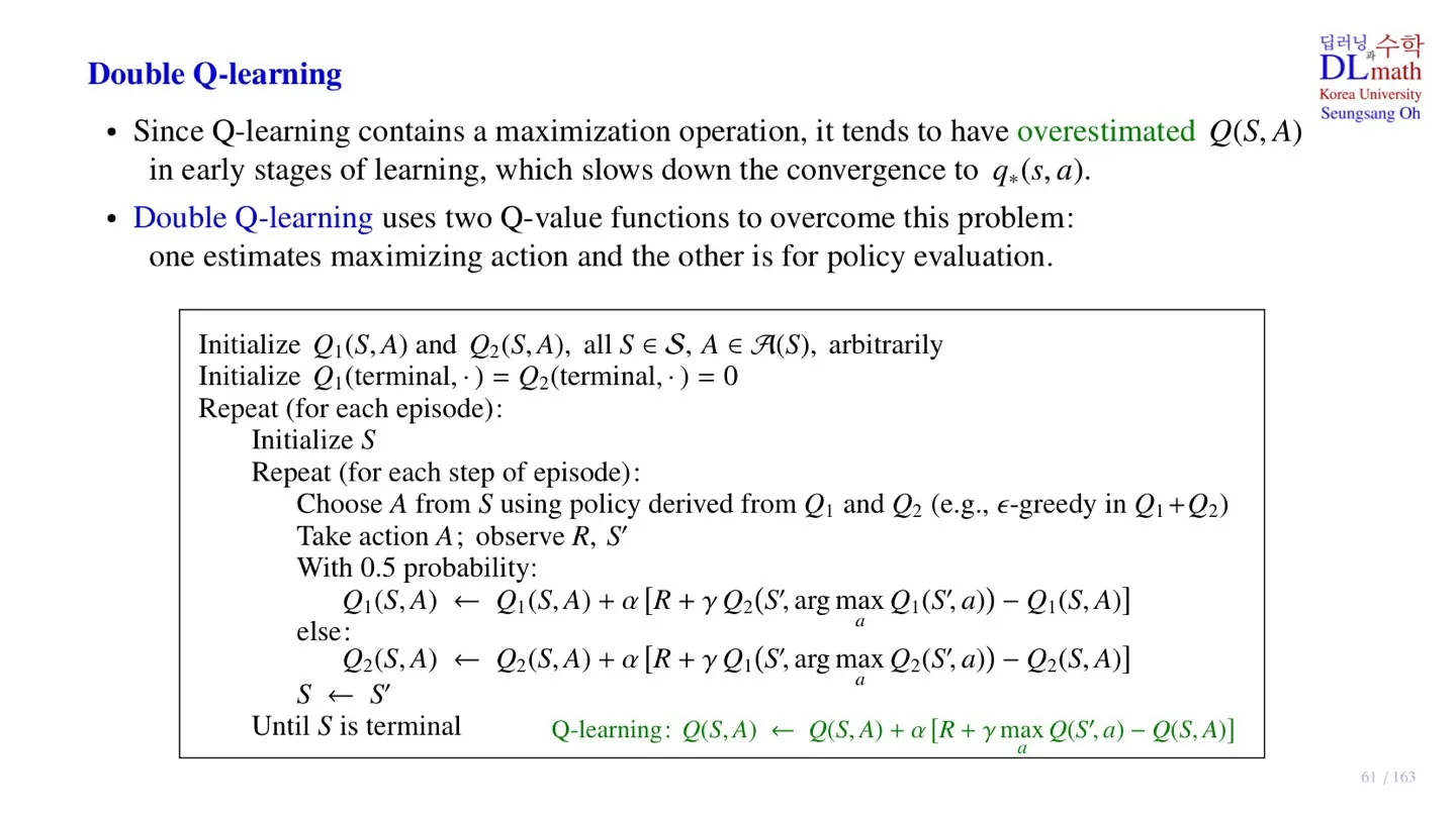 Q-learning의 한계를 극복하기 위해 2개의 Q-value function을 사용한다.