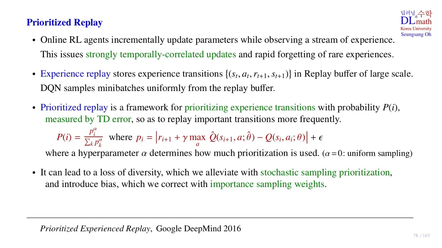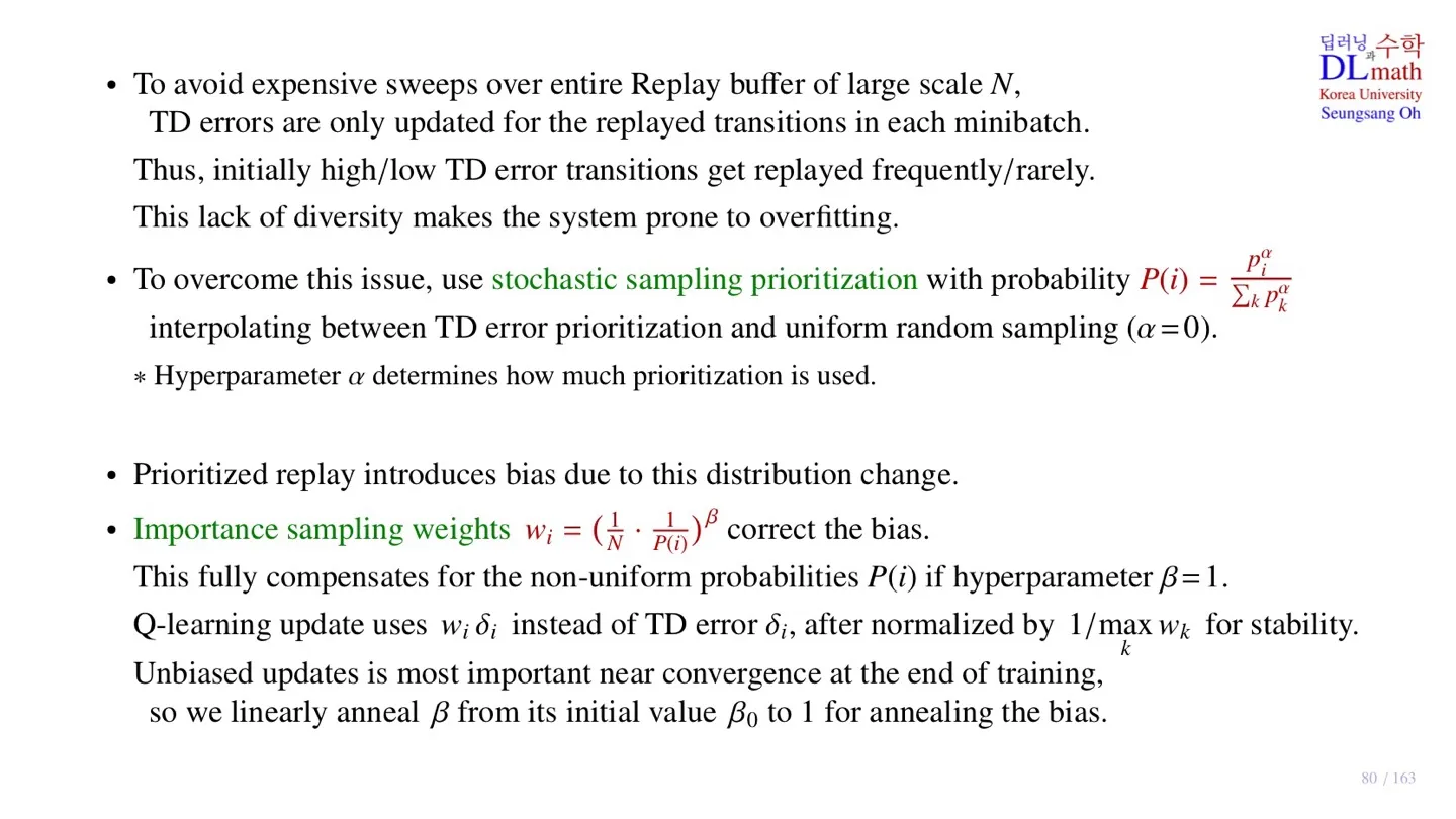 - 이후 업데이트를 진행할 때 sampling된 데이터에 대하여 TD error를 다시 계산하게 된다.