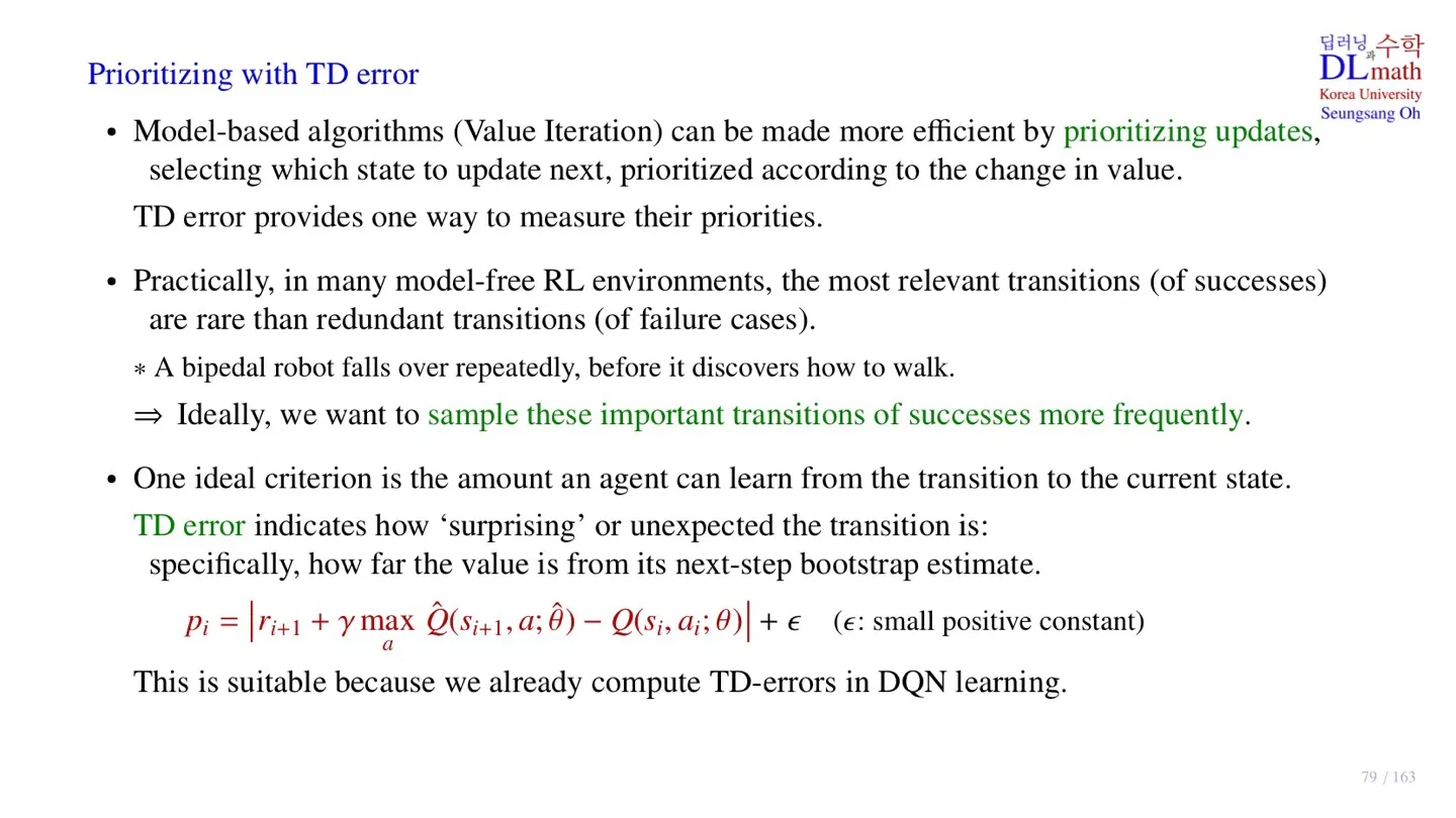 - DQN의 gradient descent를 계산할 때 TD error를 이미 계산하기 때문에 추가적인 연산과정이 필요하지 않다.
