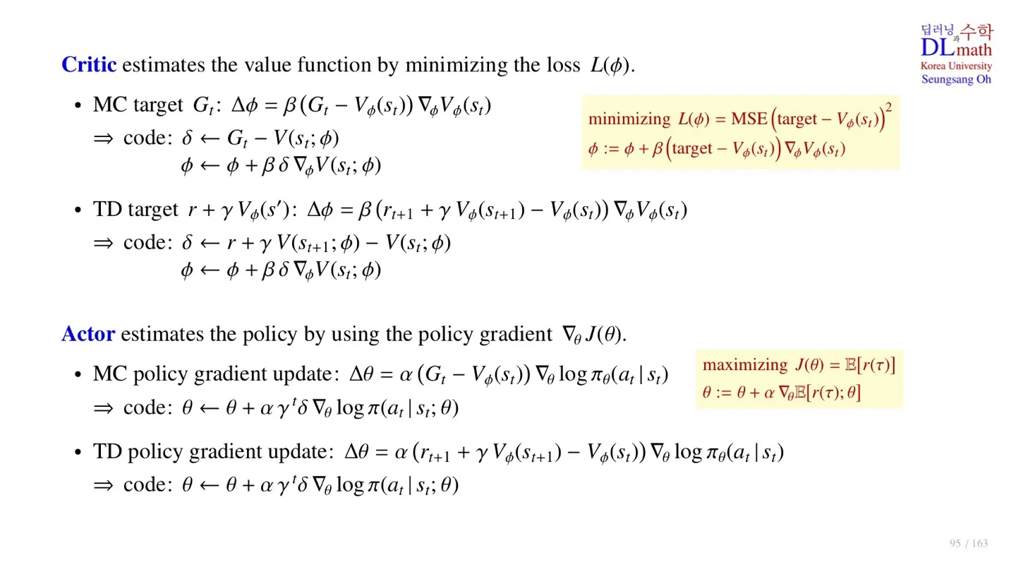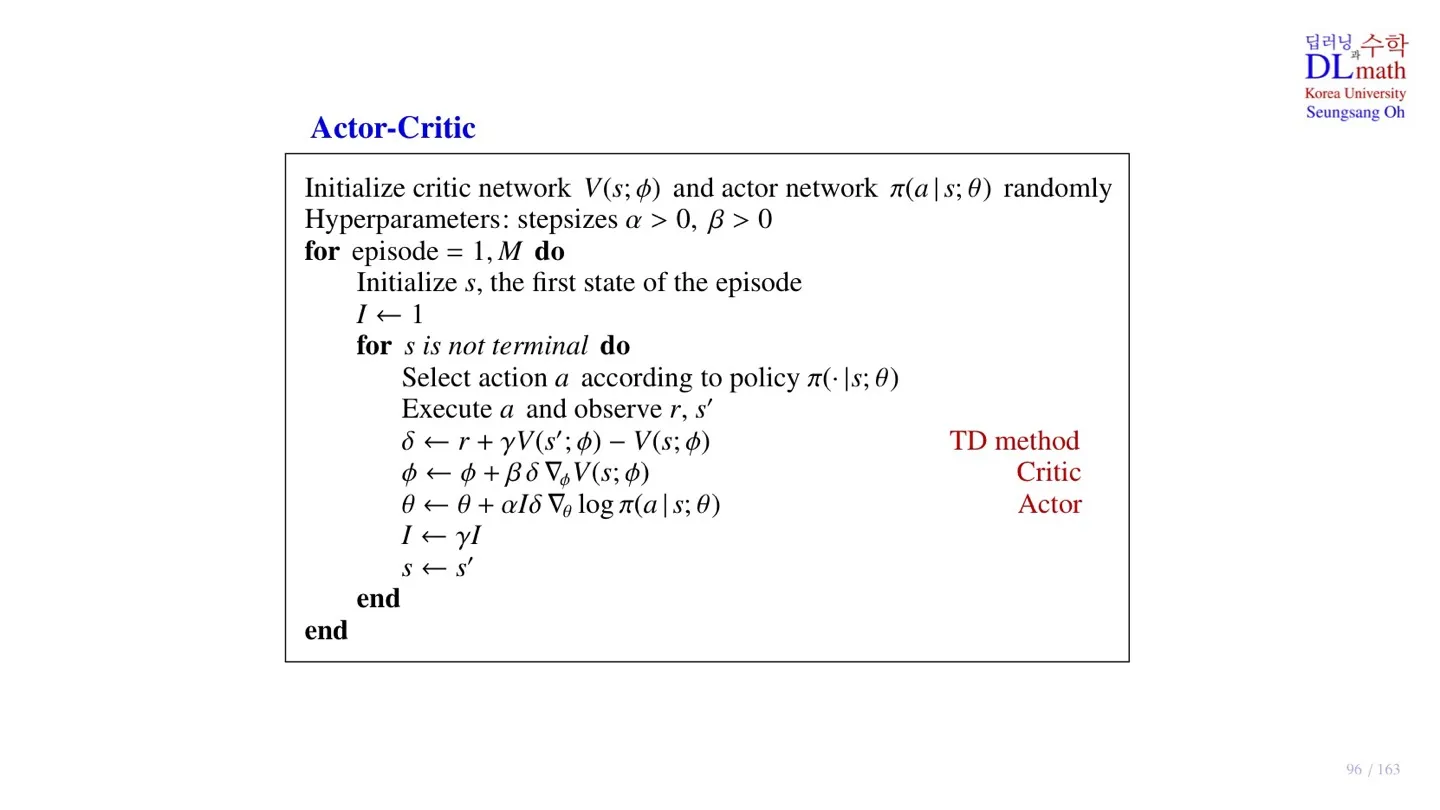 - TD Actor-Critic의 pseudo code를 살펴보았다.