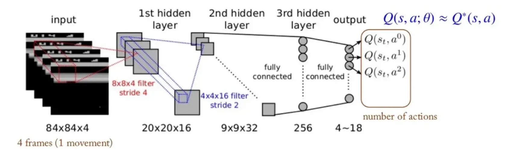 Deep Q-Network (DQN) : Value function 을 근사한다.