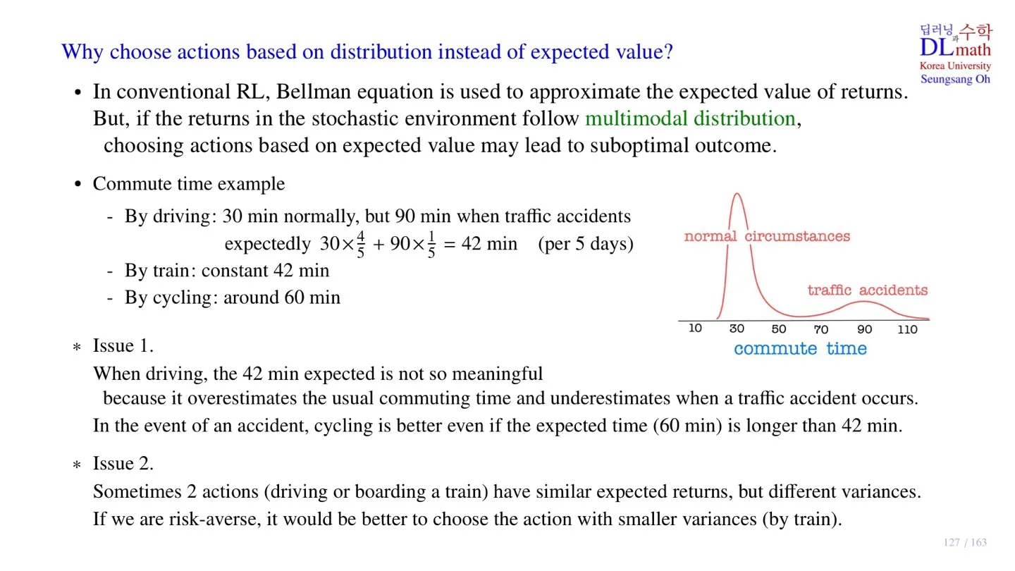 - 기존의 모델들은 Bellman equation에 따라 return의 기대값을 사용한다.