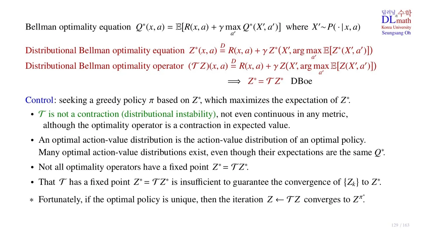 - 또한 많은 optimal action-value distribution이 존재한다.