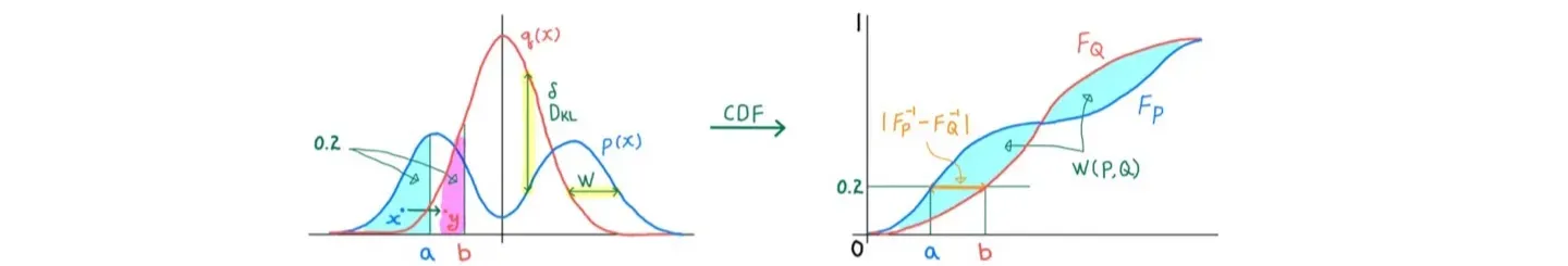 - CDF 사이의 거리를 모두 합하면 면접이 되고, 우리는 이 면적의 크기가 줄어드는 방향으로 학습을 수행할 수 있다.