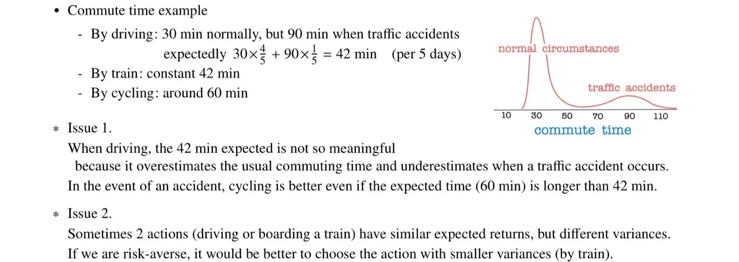 - 하지만 두 값의 분산이 다르기 때문에 risk한 상황을 피하고 싶다면 기차를 선택하는 것이 더 안전한다.