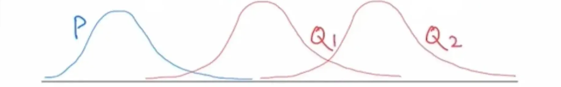 - 현재 distribution Q1과 Q2는 P와 멀리 떨어져 있다.