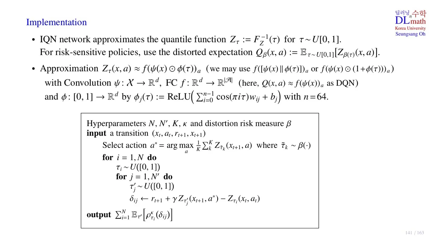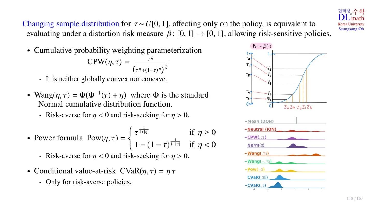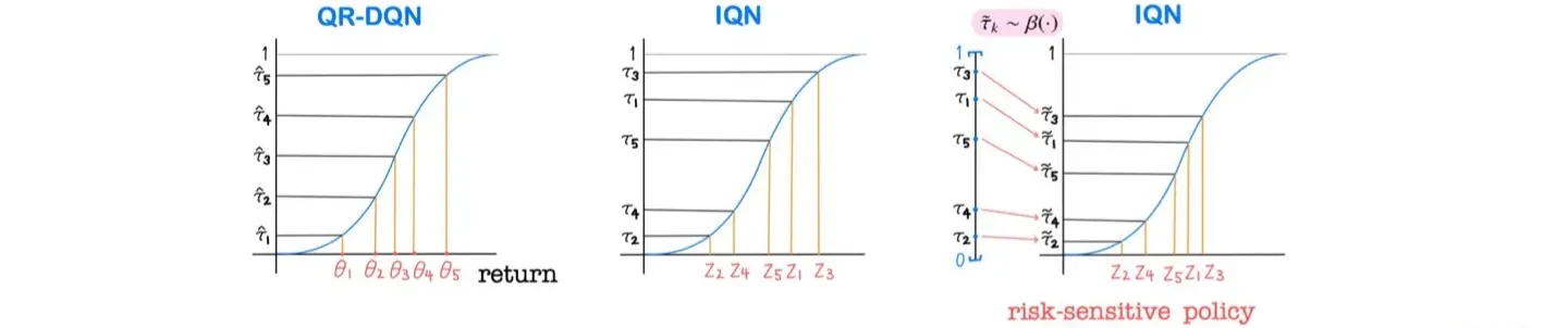 - IQN은 학습하는 분포를 변형하여 학습하는 분포의 risk 정도를 조정한다.