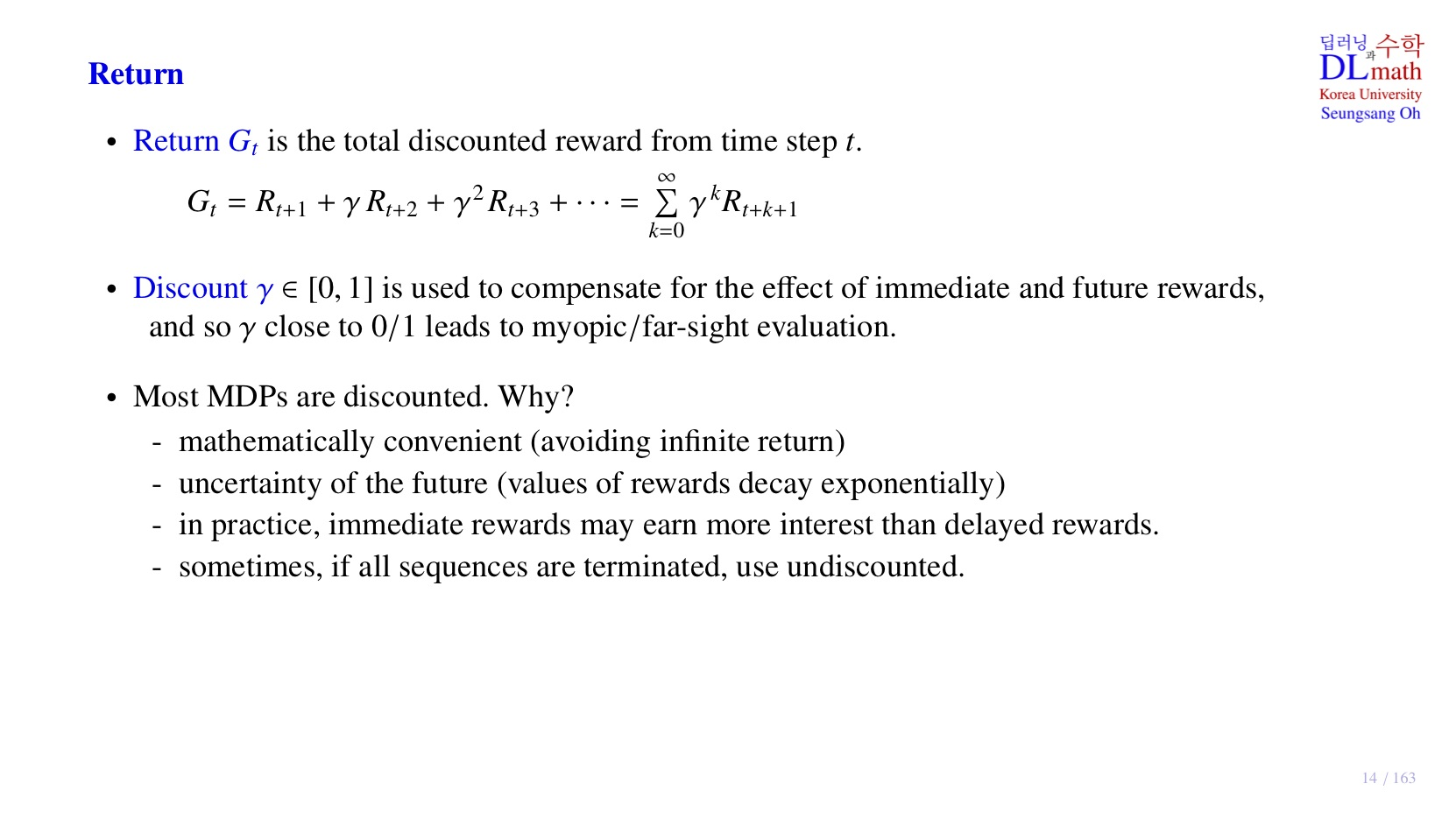 - 여기서 주의할 점은 모든 reward가 동시에 발생하지는 않는다. 수식의 등호를 만족하기 위한 전확률 공식이라고 이해하면 된다.