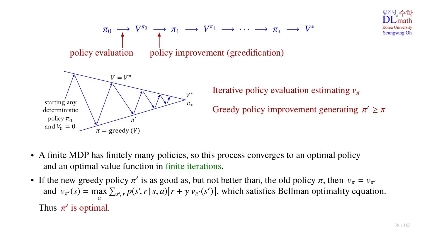 - Old policy와 New policy가 다르면 policy Evaluation으로 돌아간다.