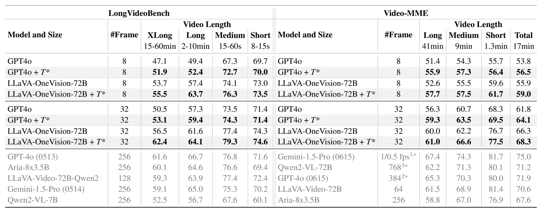 긴 비디오일수록, 더 적은 프레임만 제공된 상황에서 성능 향상이 도드라졌다.