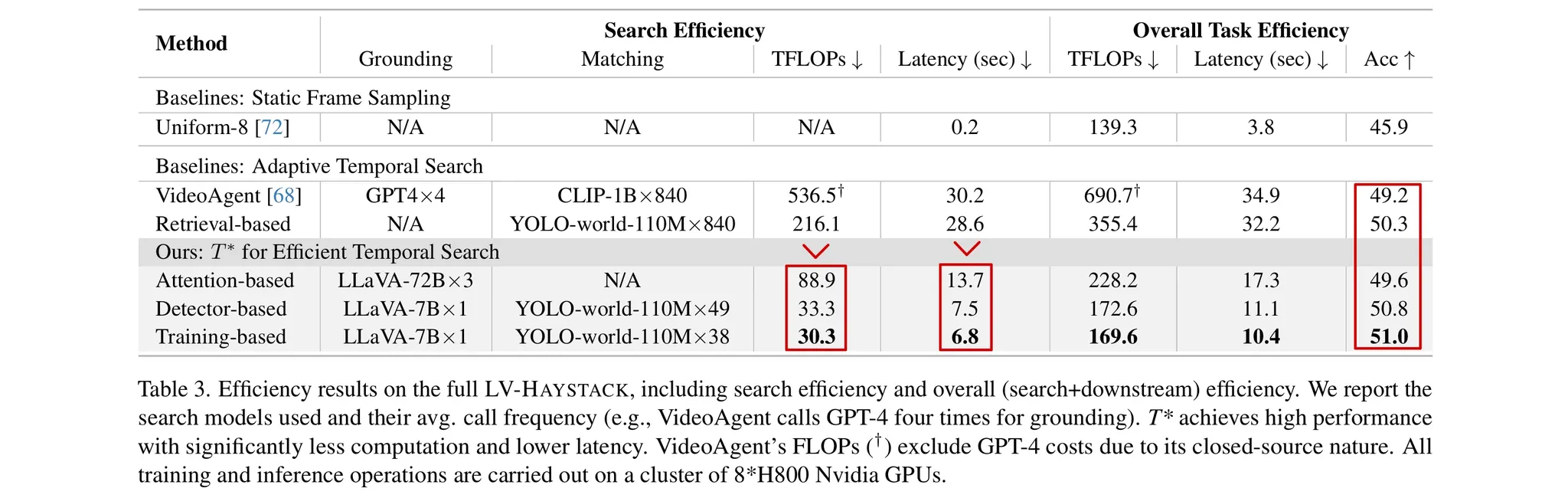 ⇒ 논문은 긴 비디오를 효율적을 잘 이해하는 것을 목표로 하고 있다. 기존의 Temporal Search 방식보다 더 적은 계산비용으로 효율적으로 필요한 프레임을 찾아 비디오 내용에 대한 질문에 잘 대답하는 것을 목표로 한다.