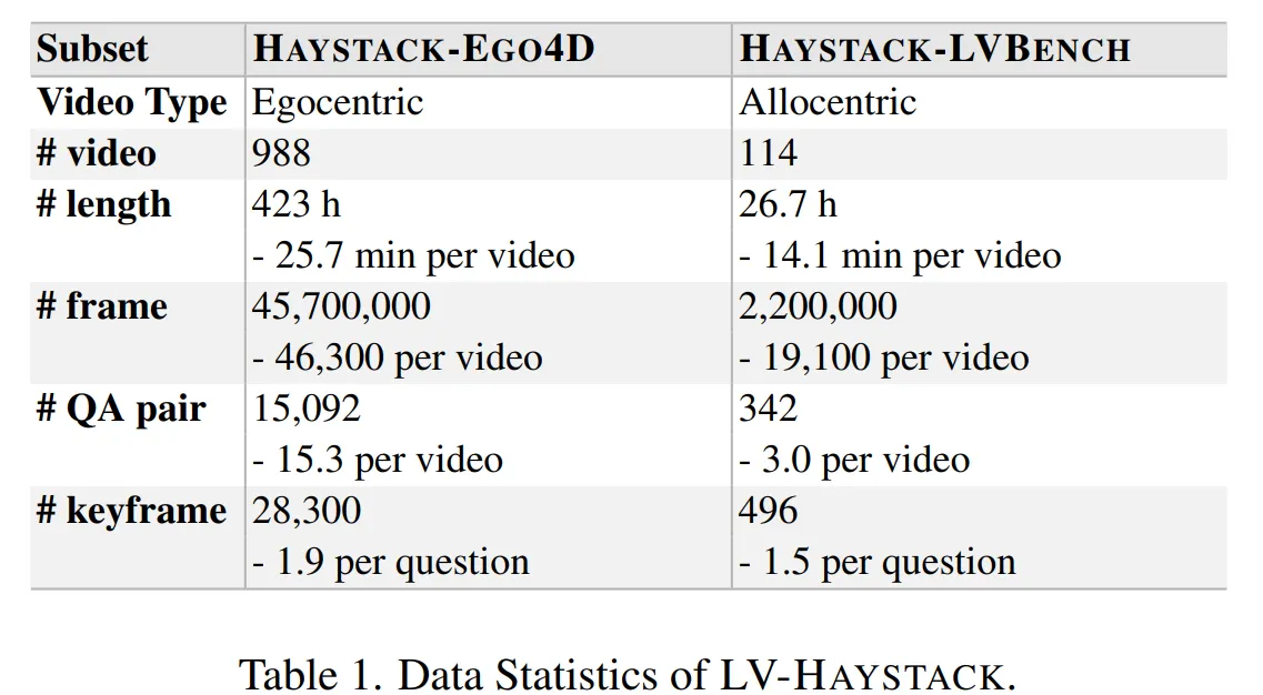 LV-HAYSTACK는 Ego4D 데이터와 LongVideoBench 데이터를 활용하여 구축되었다.