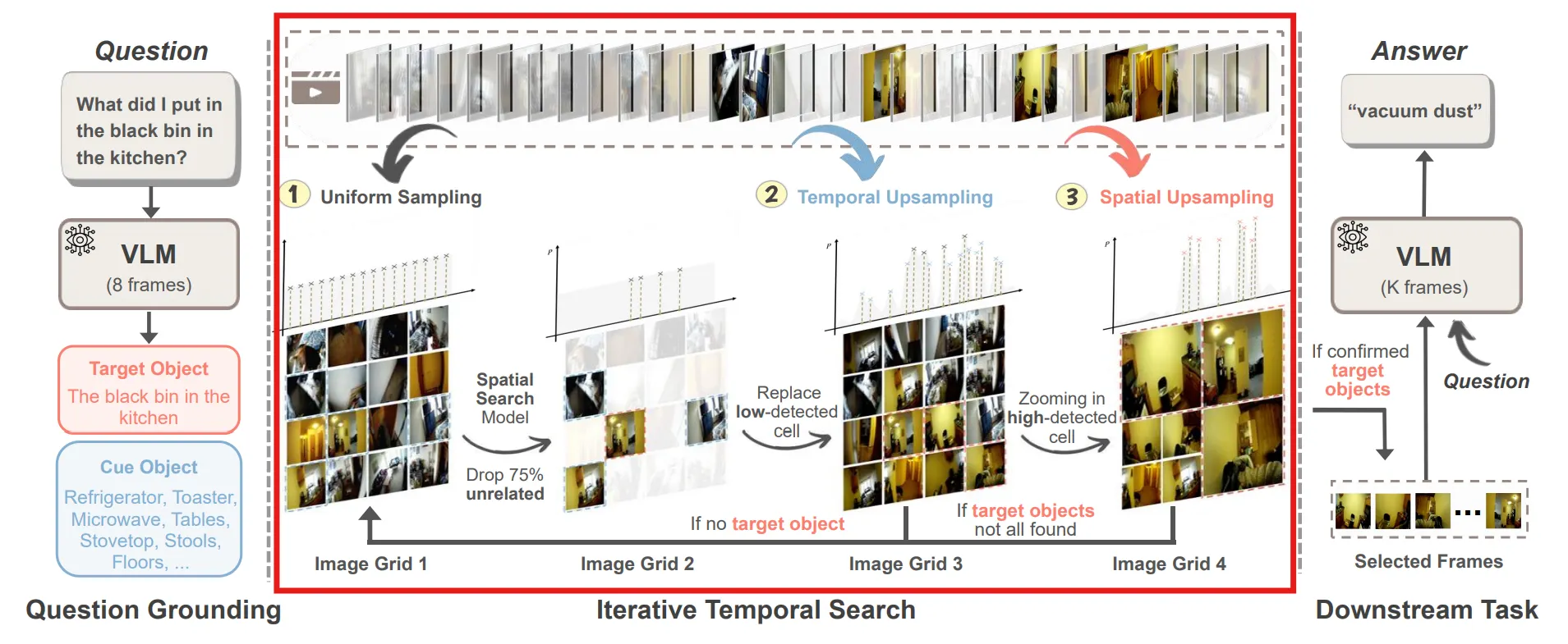 Iterative Temporal Search : Video의 프레임을 넓게 펼친 후 선정된 Target Object가 있는 프레임을 찾는다.