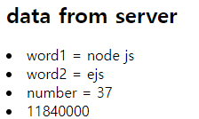 ejs는 jsp나 부트의 mustach 처럼 바로 태그 안에서 서버로 부터 받은 값을 사용할 수 있다.