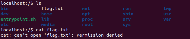 cat flag.txt 를 해보았으나 접근이 되지 않았다.