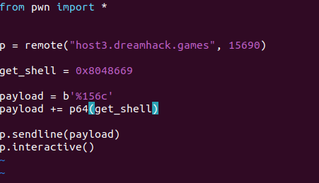 이를 이용해서 ret부분까지 % 어쩌구 저쩌구로 채우고, ret에 get_shell 주소를 입력하면 되지 않을까 싶다.