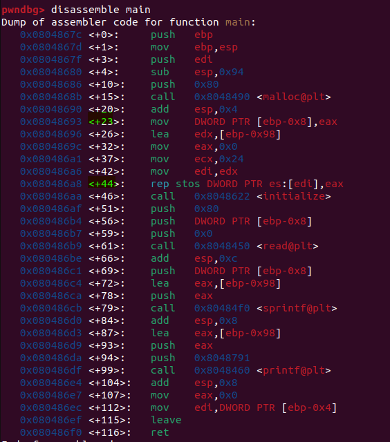 stack_buf의 주소가 ebp-0x98인 것을 알 수 있으며, stack_buf가 ebp와 152바이트 떨어져있다는 것을 의미한다.