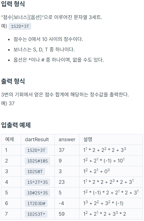 다트 게임의 점수 계산 로직은 아래와 같다.