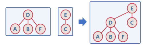 만약 두 트리의 높이가 다르면 높이가 큰 트리에 높이가 작은 트리를 붙인다