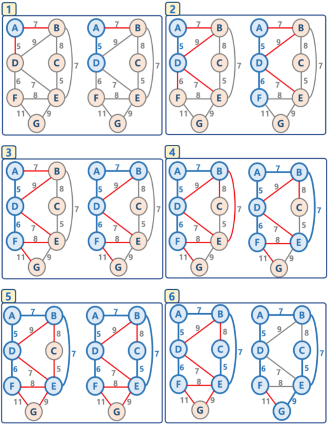 네트워크(가중치를 간선에 할당한 그래프)에 있는 모든 정점들을 가장 적은 수의 간선과 비용으로 연결하는 것