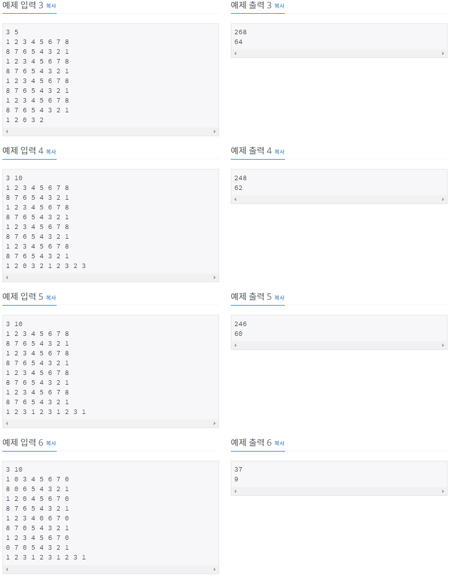 fire_storm함수를 호출tmp_arr을 생성한 뒤 구역탐색을 시작section 배열을 생성한 뒤 해당 위치에 대한 값을 저장section을 회전tmp_arr에 저장section에 대한 값이 tmp_arr에 저장이 되었다면 melt함수를 실행result_arr리스트를 생성한 뒤 배열 순회result_arr에 저장arr배열을 갱신📌 pypy로 통과했다