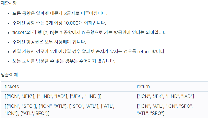 항공권 정보가 담긴 2차원 배열 tickets가 매개변수로 주어질 때,