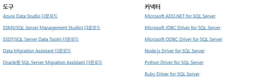 사진 왼쪽위 두번째에 있는 SSMS(SQL Server Management Studio) 다운로드 클릭 !!