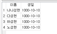 SELECT Name AS "이름", Birthday AS "생일" FROM Person;