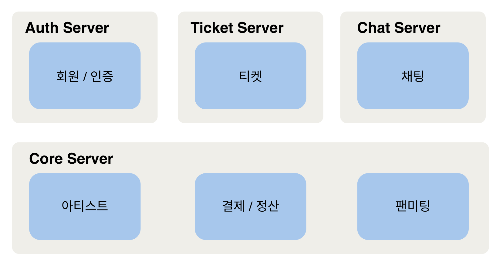 대량의 트래픽 대응을 위해 분리할 필요가 있다고 생각했던 채팅 서비스와 티켓팅 서비스를 별도의 서버로 분리합니다.