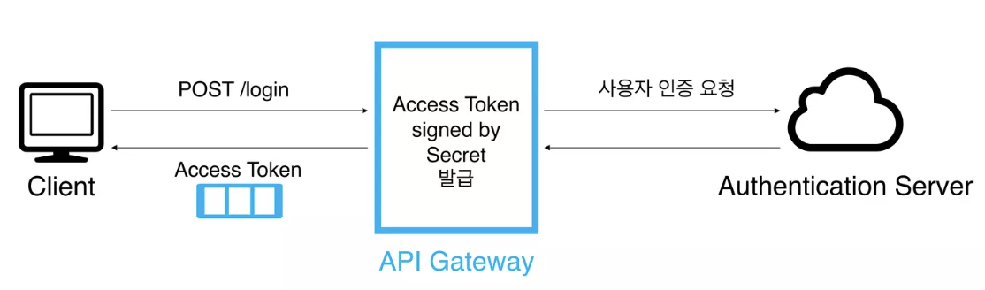 로그인을 하는 경우 아래 그림처럼 Auth Server로 요청을 전달하여 사용자에게 jwt를 발급합니다.