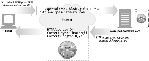 HTTP transaction은 요청 명령과 응답 결과로 구성된다. 이러한 상호작용은 그림과 같이 HTTP message라고 불리는 정형화된 데이터를 이용해 이루어진다.
