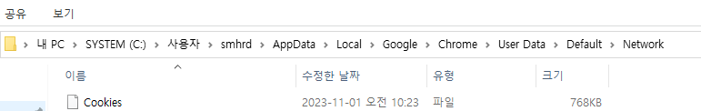 크롬 쿠키 확인하는 방법(보기에서 숨긴항목보기 체크)