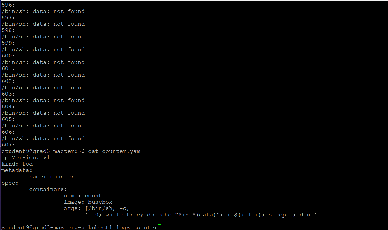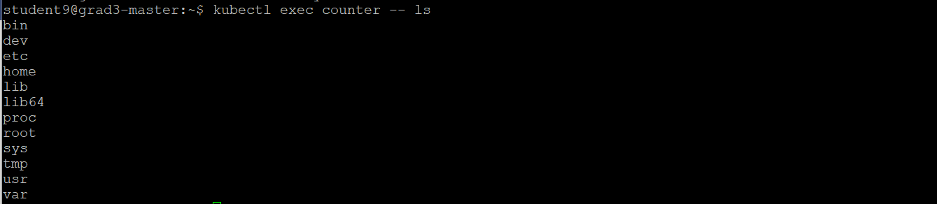 kubectl exec counter -- ls