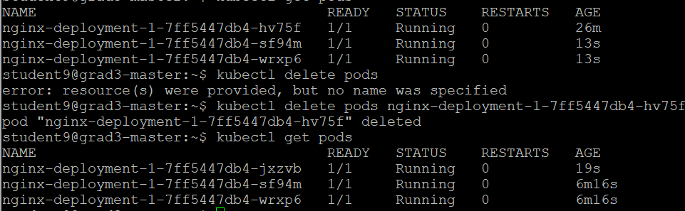 kubectl delete pods nginx-deployment-1-7ff5447db4-hv75f
