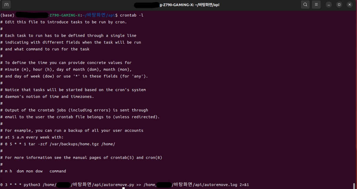 그리고 파일 특정 시간에 py파일을 실행시키고 파일의 로그를 특정 위치에 저장하겠습니다.