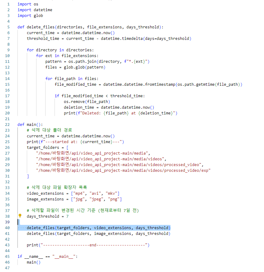 저는 이미지 파일을 주기적으로 지우고 싶어서 파이썬 코드로 7일 전에 만들어진 이미지파일을 지워주는 코드를 특정 시간마다 실행시켜 주겠습니다.