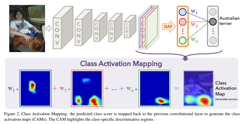 Zhou et al. : 이들은 CNN이 장면을 인식하도록 훈련되는 동안 객체 감지기(object detectors)를 학습한다는 것을 보여줍니다. 이 연구는 CNN이 단일 전달에서 장면 인식과 객체 위치 파악을 모두 수행할 수 있음을 보여줍니다.