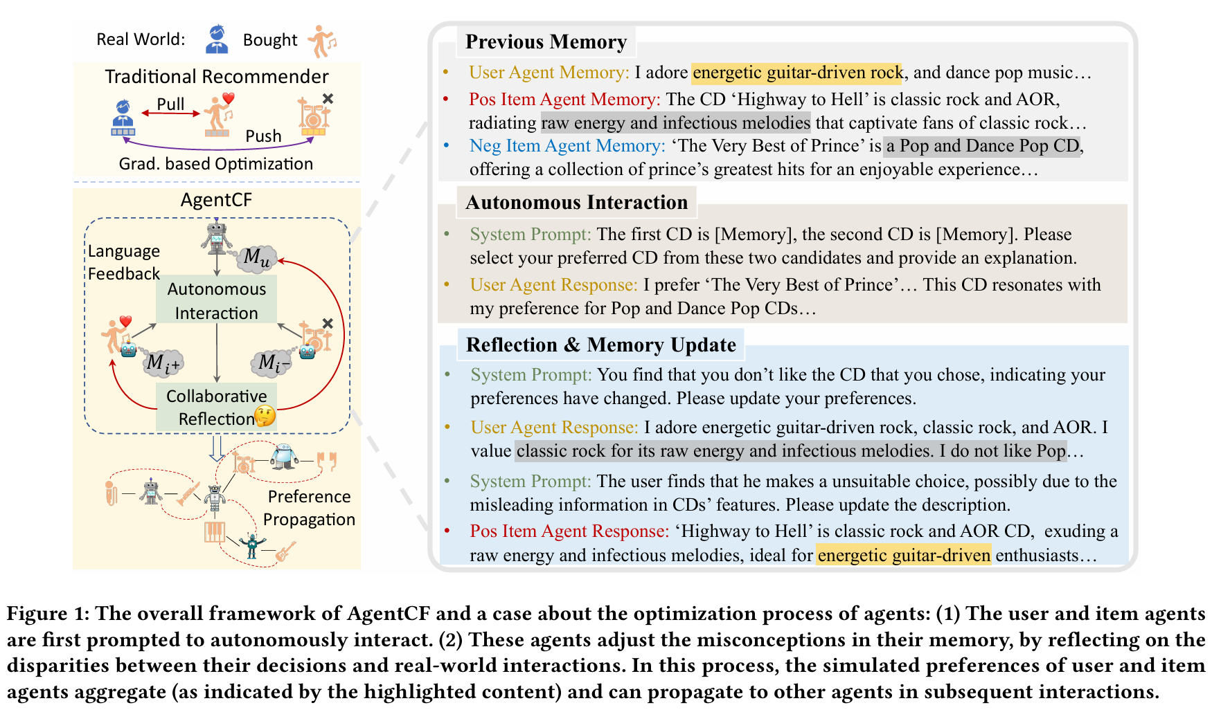 Reflection & Memory Update : 시스템의 응답에 따라 user, item 에이전트가 수정됨사용자 에이전트의 메모리