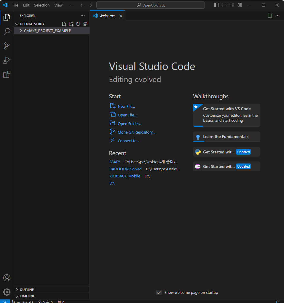 - 새 프로젝트를 위한 디렉토리를 생성한 뒤 VSCode 실행