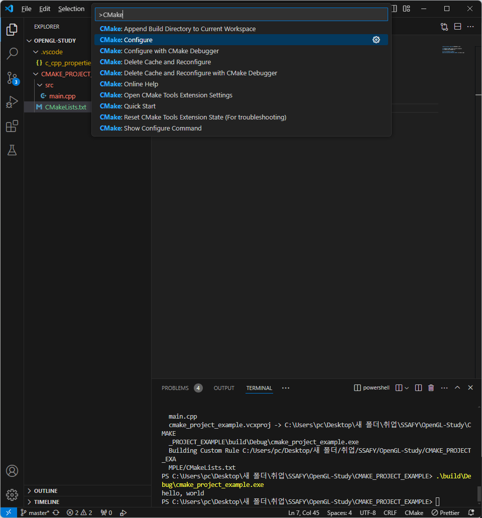 - Terminal Powershell 창에서 "cmake --build build" 명령어 입력