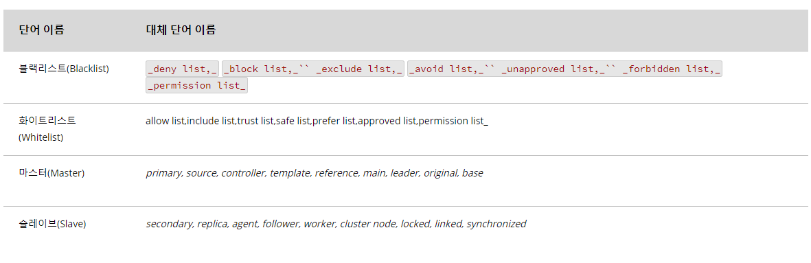 - 문제의 소지가 있는 단어들은 가급적 피하는 게 좋다