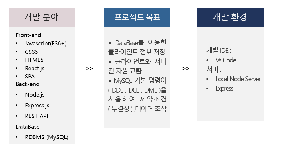 프론트엔드와 백엔드의 기본 지식을 다지기 위해 진행된 프로젝트 입니다. 클라이언트에 깔끔한 디자인과 정렬된 데이터 노출 , 데이터베이스를 이용해 데이터 일관성과 제약조건을 이용해 데이터 무결성을 유지시키는데 많은 도움이 된 프로젝트입니다. 비록 대학 공부와 병행하는 프로젝트기에 시간이 많이 걸렸으나 그 이외에 어려웠던것은 없었습니다. 기능적으로 만족하는 프로젝트이지만 보안이나 오픈소스활용 , 대중적인 서버 프레임워크를 사용하지 못한 아쉬움이 크지만 이후에 심화과정을 통해 더욱더 많은 지식으로 프로젝트를 진행할 것 입니다.
