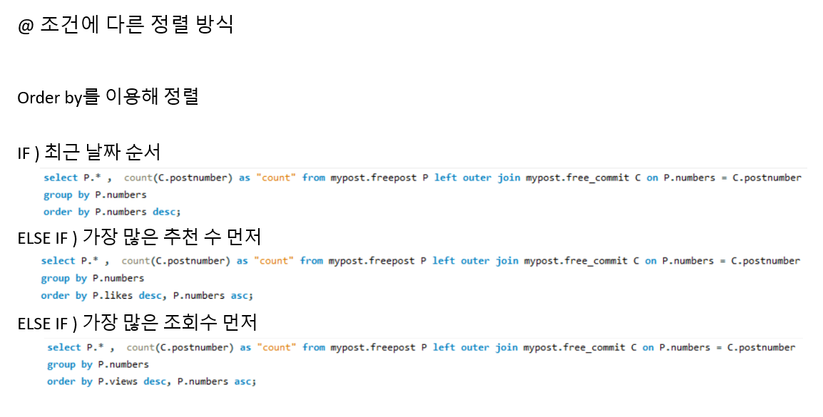 1 . 게시글 정렬 순서는 Order By를 이용해서 데이터 순서 조정합니다.