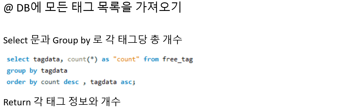 2 . Group By를 이용해와 집계함수 Count()를 이용해서 각 태그별로 갯수를 추출합니다.