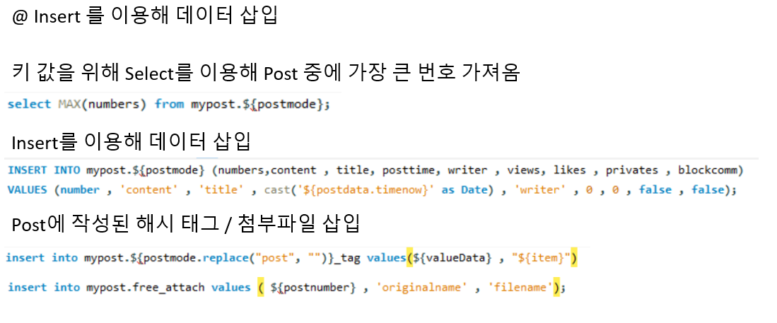 게시글 번호를 갱신하기 위해 집계함수 MAX()를 이용해 게시글중에 가장 큰 숫자를 가져와 1을 더해서 키값으로 사용합니다.